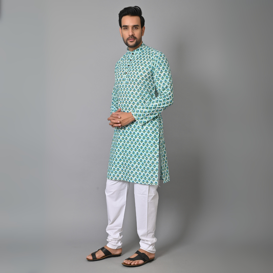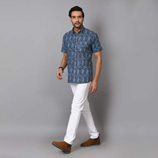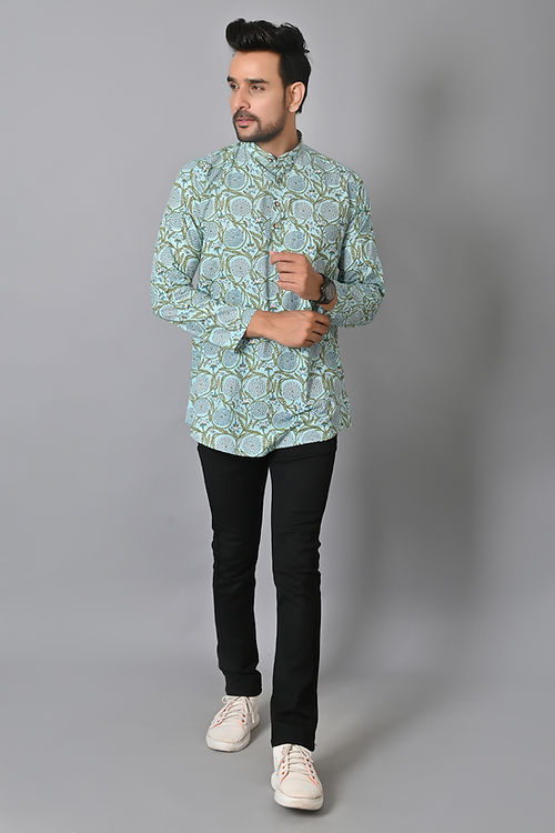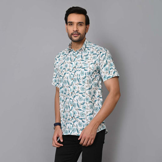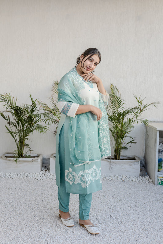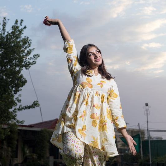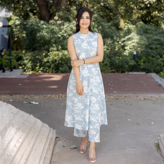 Blue Floral Elegance Cotton Rayon Co-ord Set – 2-in-1 Wear with Attachable Sleeves