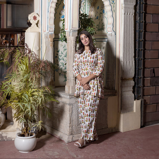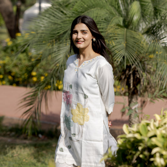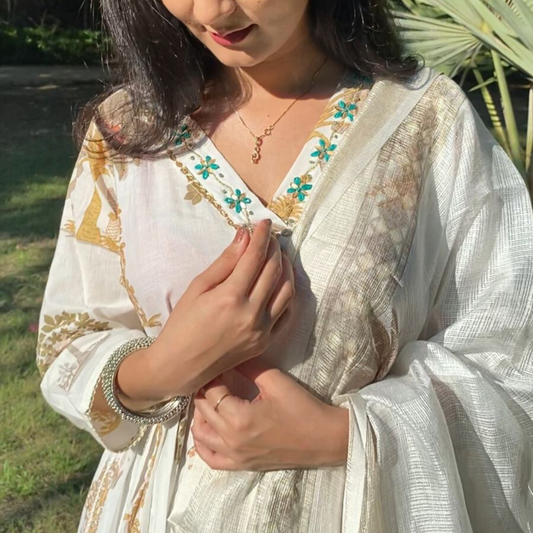 Elegant Navy Blue Embroidered Silk Co-ord Set