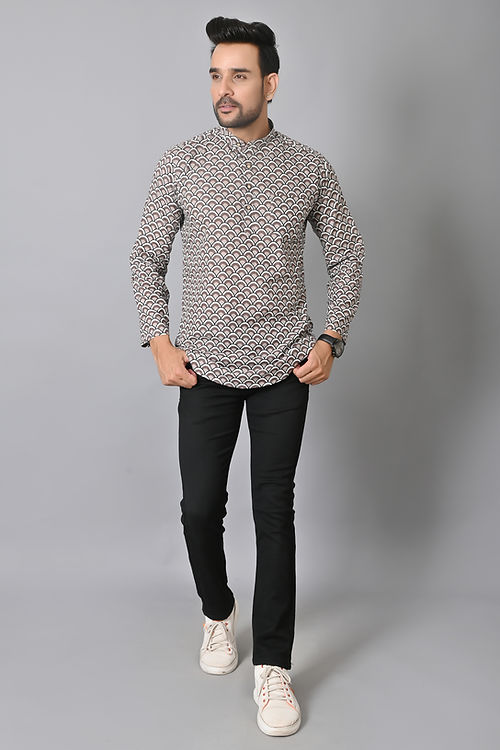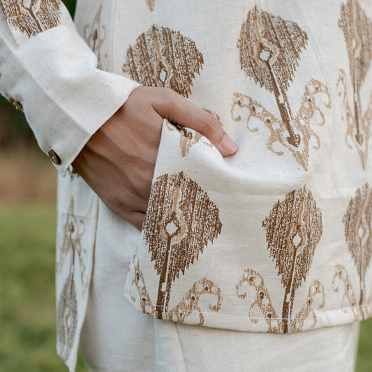 Grey Horizontal Striped Shirt – Cotton & Linen Blend | Koash by Nidhi Collection