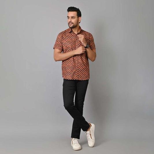 Golden Petals Printed Half Sleeves Shirt