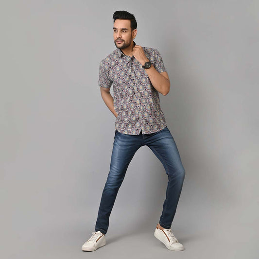 Grey Mandala Printed Half Sleeves Shirt