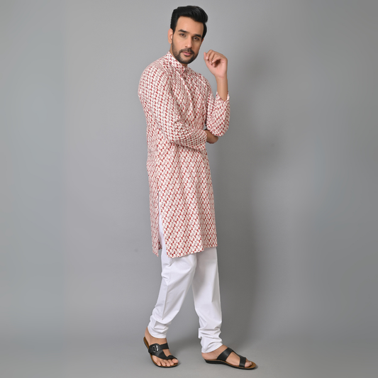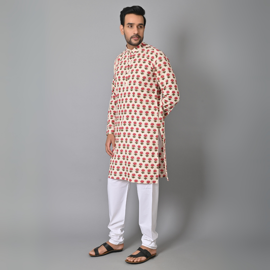 Red Petals HandBlock Printed Long Kurta