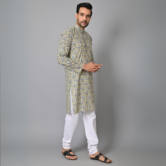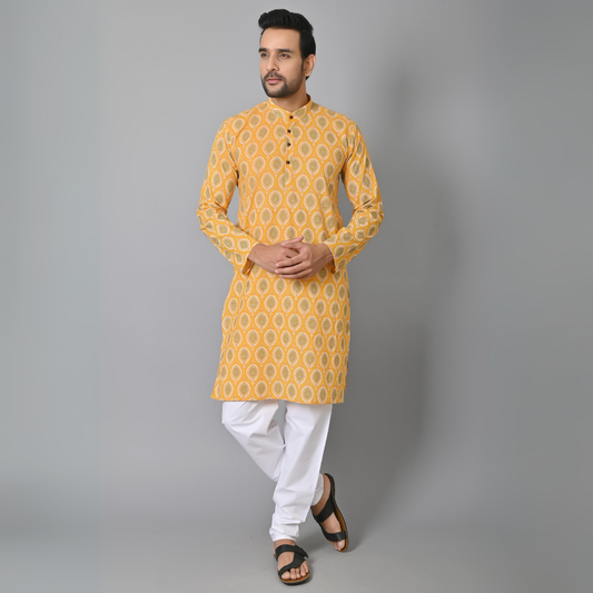 Yellow HandBlock Printed Long Kurta