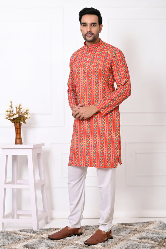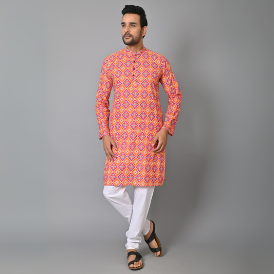 Orange Abstract Printed Long Kurta