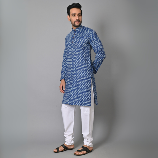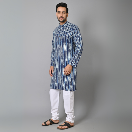 Royal Blue Motif Long Kurta