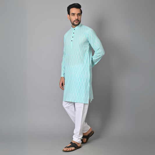 Sky Blue Printed Long Kurta