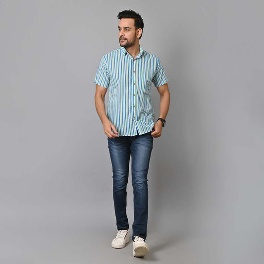 Blue Stripes Printed Half Sleeves Shirt