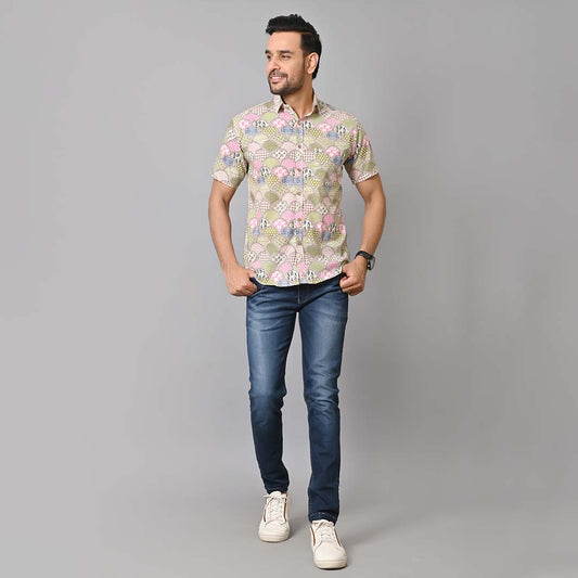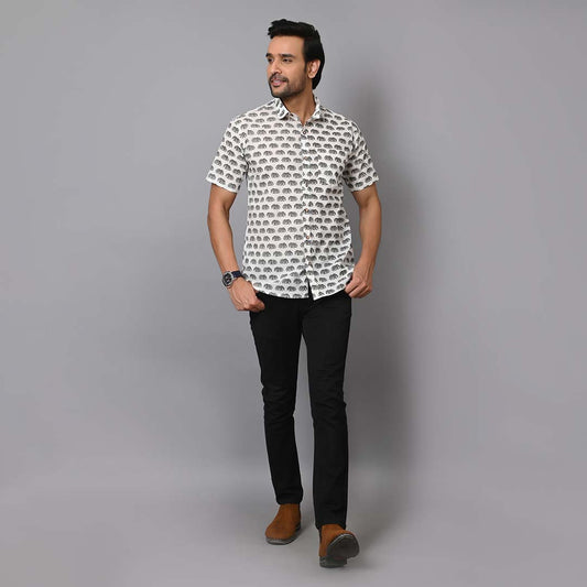 Elephant Printed Cotton Half Sleeves Shirt
