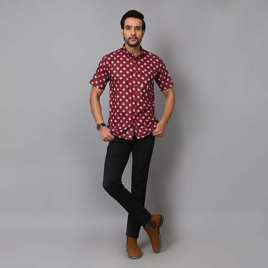 Maroon Petal Printed Half Sleeves Shirt