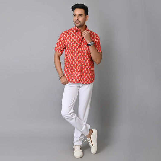 Red Petals Printed Half Sleeves Shirt