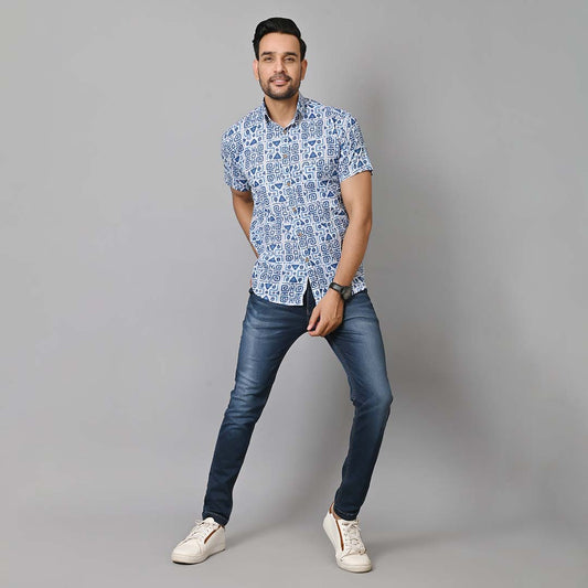 Blue Paisley Printed Half Sleeves Shirt