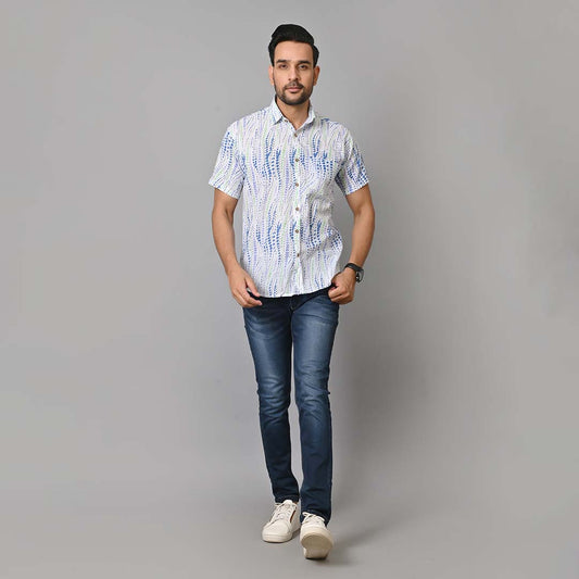 Sea Blue Waves Printed Half Sleeves Shirt