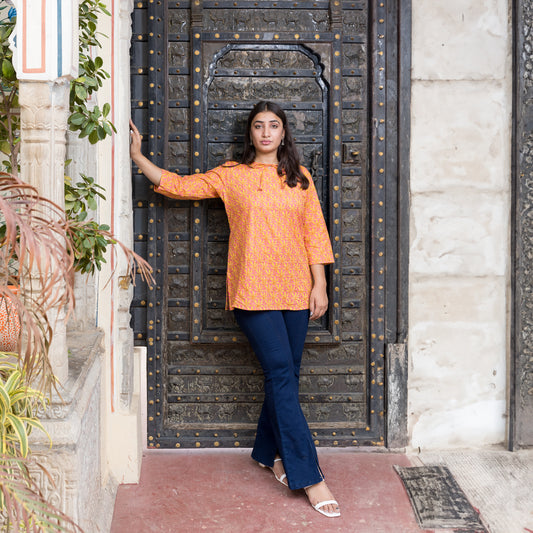 Orange Melow Katha Short Kurti