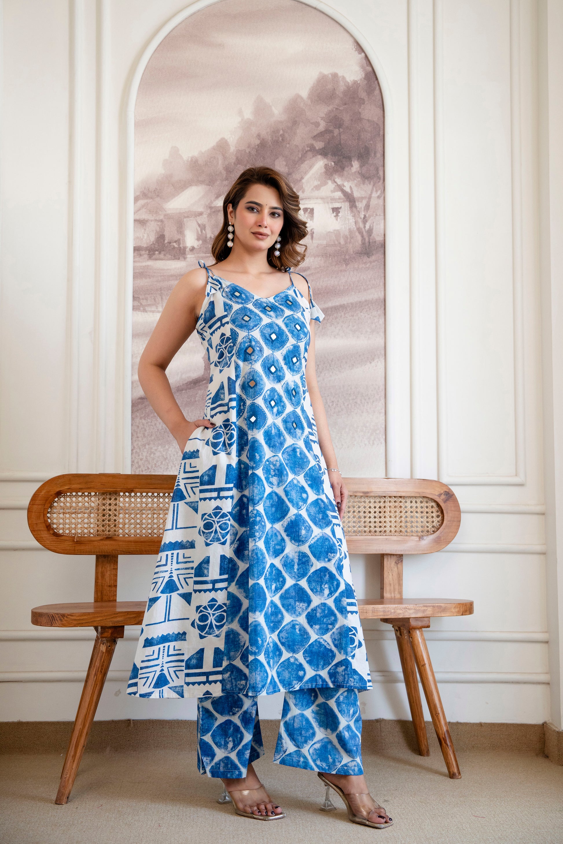 A timeless blend of tradition and summer elegance, the Indigo Drop Cambric Co-Ord Set is designed for women who love effortless sophistication.