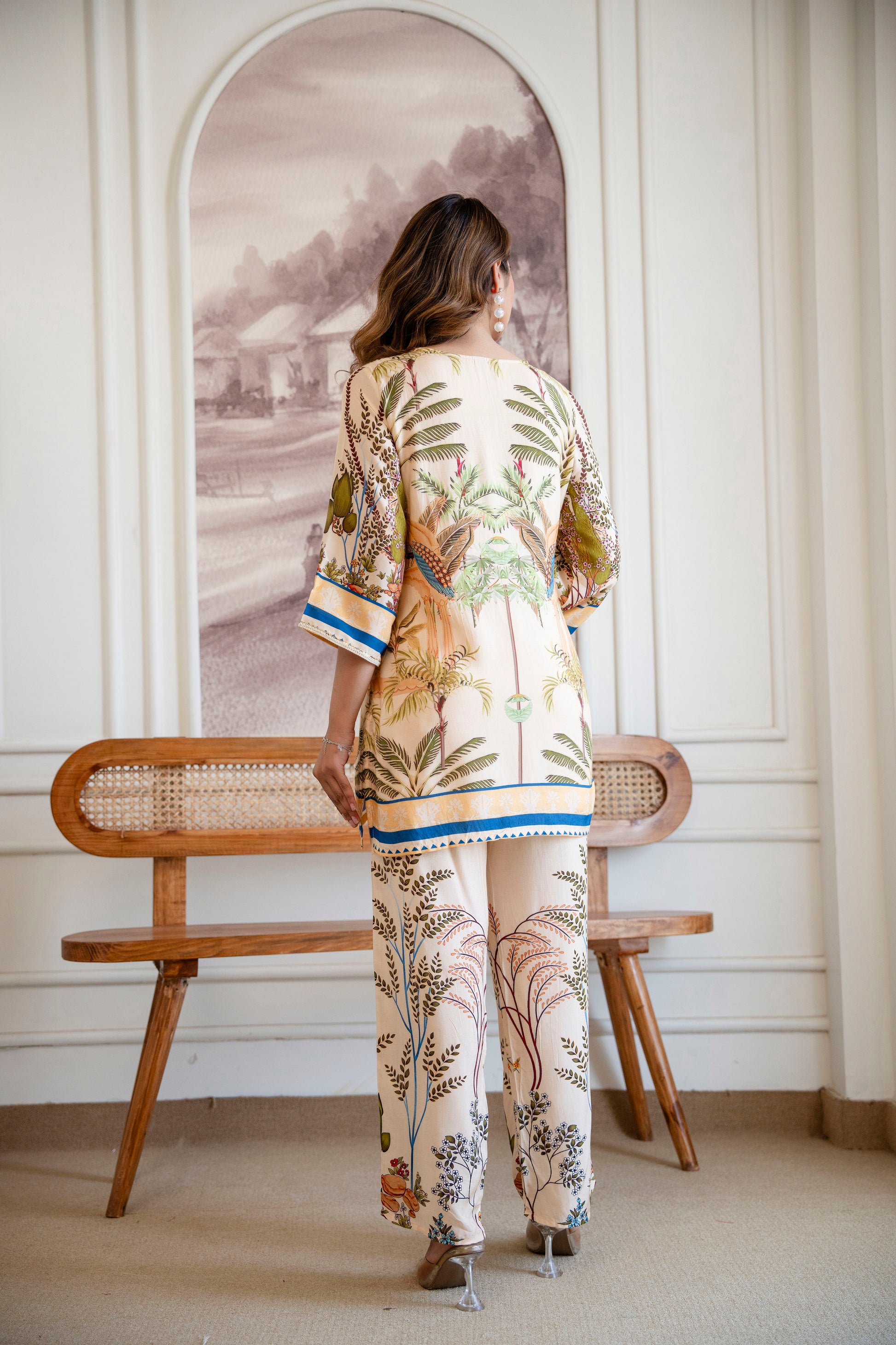 The flowing palazzo silhouette balances structure with comfort, creating a poised yet relaxed aesthetic. Thoughtfully finished with a functional side pocket, this ensemble embodies modern luxury — where beauty meets practicality.