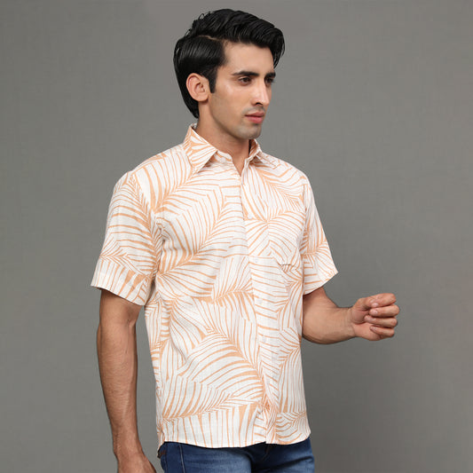 Peach Printed Half Shirt – Premium Linen | Koash by Nidhi Collection